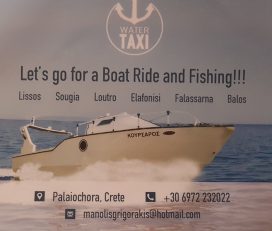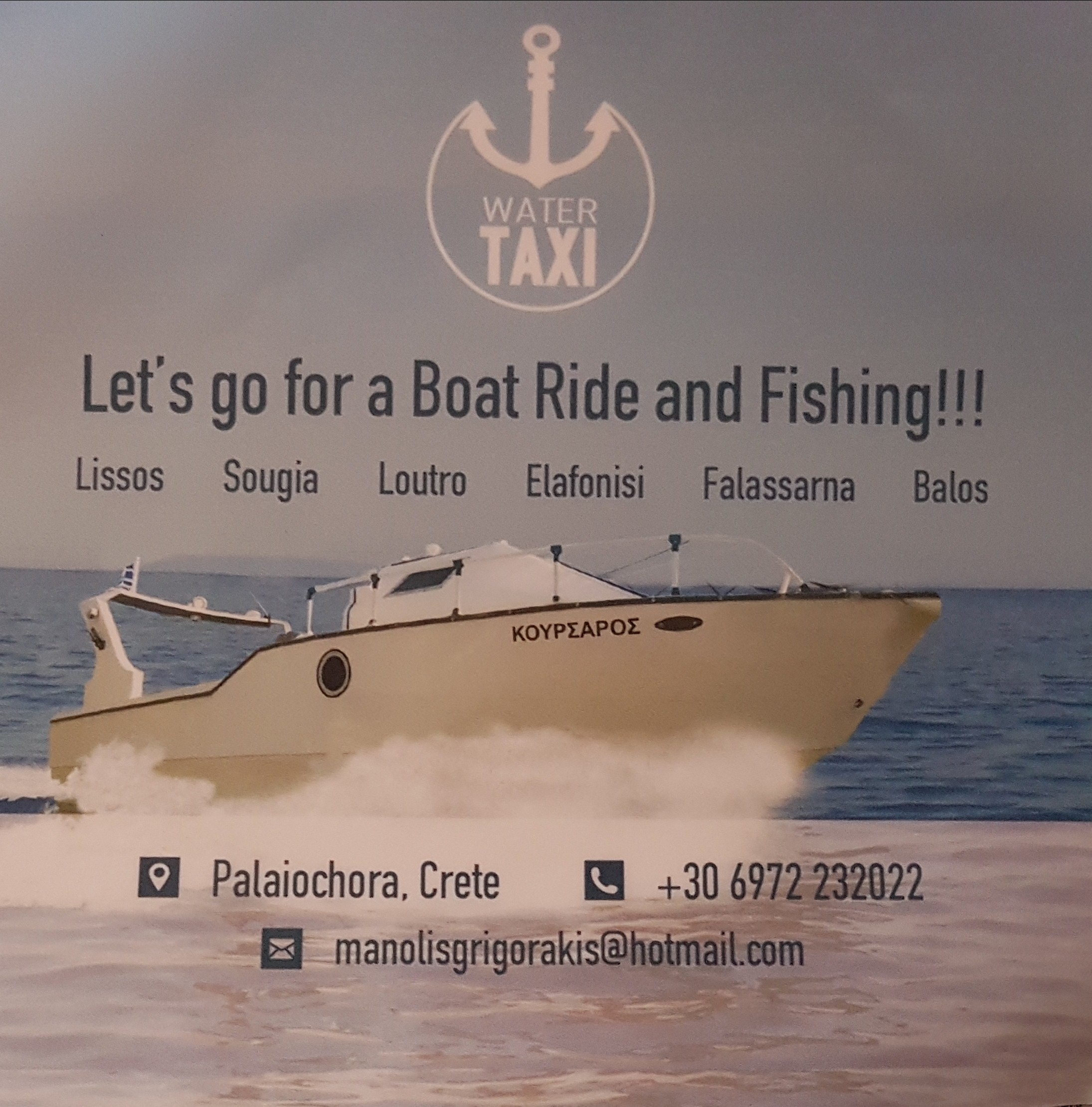 We can go after appointment on many places like Lissos, Sougia, Loutro, Elafonisi, Falassarna, Balos. Just for fun or fishing or both!!